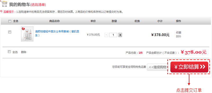 您可以點擊“繼續購物”按鈕,繼續挑選產品,或點擊“立即結算”按鈕,進入下一步;